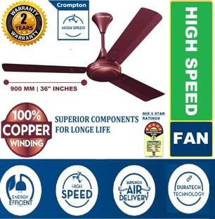 Crompton Surebreeze Ultra High Speed 100 Copper Motor Double Ball Bearing Long Lasting 900 Mm Ultra High Speed 3 Blade Ceiling Fan Price In India Buy Crompton Surebreeze Ultra High Speed